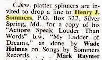 Jimmie Ammons [Delta Records owner] earned his living as a machinist, but enjoyed a second vocation with the aid of his new tape recorder. He and a friend would meet once a week after work and concoct melodies for poems that were solicited by mail from aspiring songwriters. The ditties were recorded by Ammons, then forwarded back to the amateur lyricists for a fee.